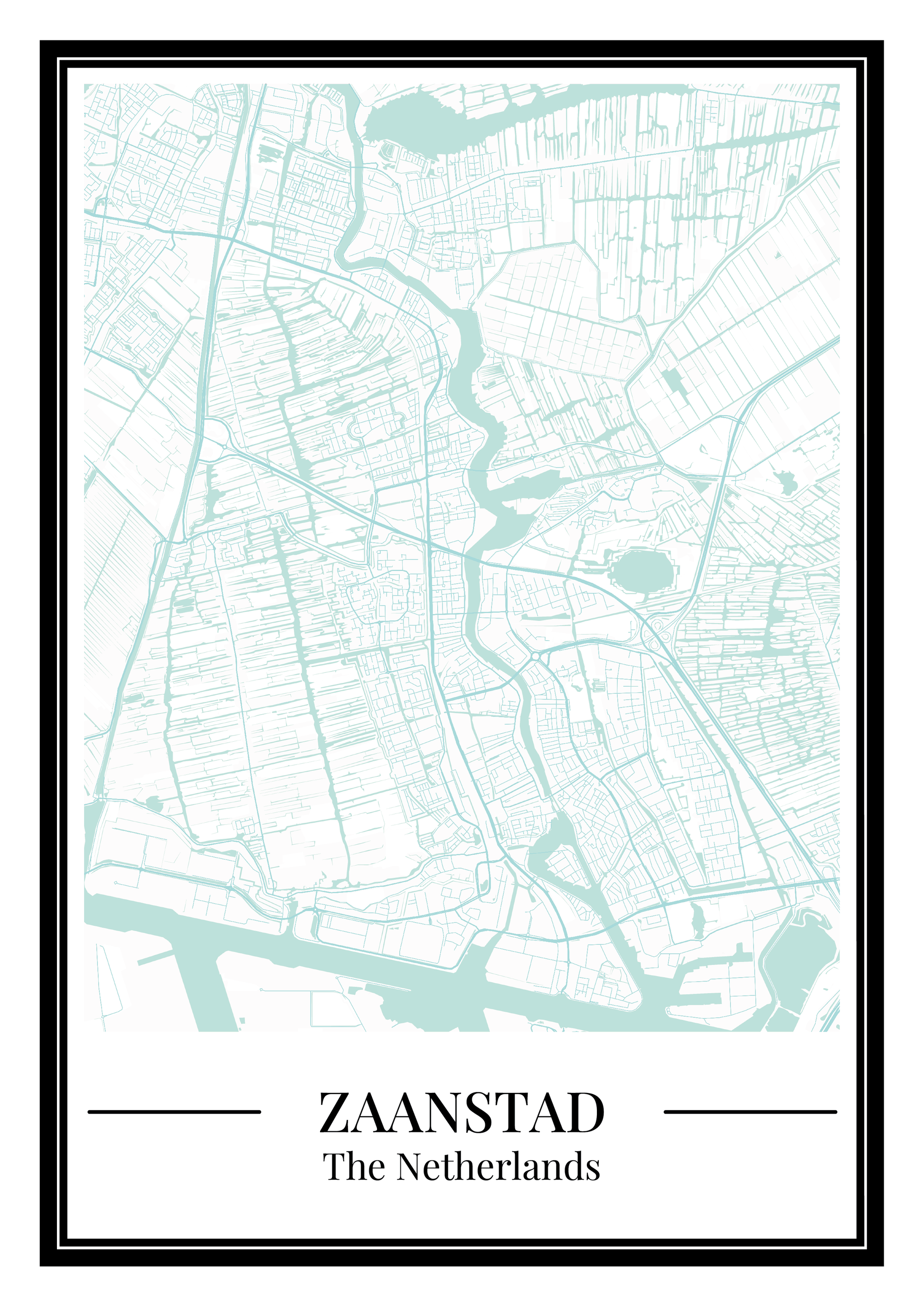 Breng een frisse en moderne sfeer in huis met deze poster van de Zaanstad stadskaart in lichtblauw. De gedetailleerde plattegrond toont de straten en wijken van Zaanstad op een stijlvolle manier, waardoor deze print een echte blikvanger is aan je muur. Perfect als persoonlijke wanddecoratie of als bijzonder cadeau voor een stadsliefhebber.