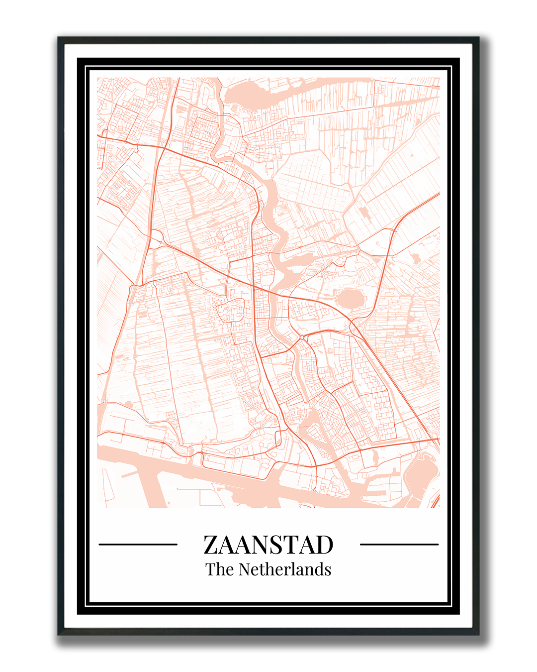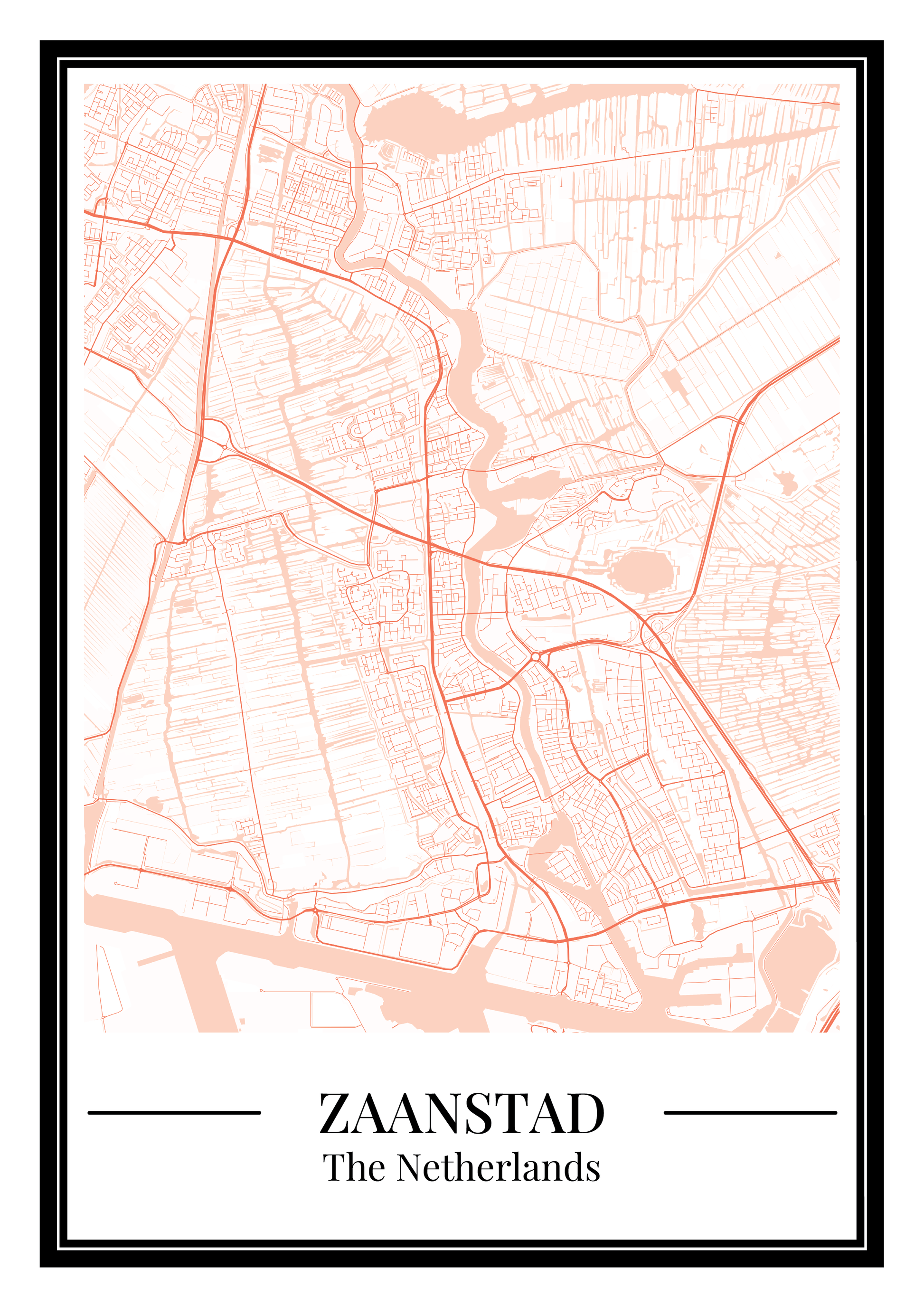 Geef je interieur een warme en stijlvolle uitstraling met deze Zaanstad stadskaart poster in oranje. De gedetailleerde kaart laat de straten en wijken van Zaanstad duidelijk zien en maakt dit ontwerp een tijdloze toevoeging aan je wanddecoratie of een bijzonder cadeau voor elke gelegenheid.
