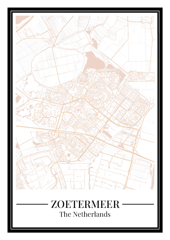 Geef je interieur een warme en stijlvolle uitstraling met deze Zoetermeer stadskaart poster in beige. De gedetailleerde kaart laat de straten en wijken van Zoetermeer duidelijk zien en maakt dit ontwerp een tijdloze toevoeging aan je wanddecoratie of een bijzonder cadeau voor elke gelegenheid.