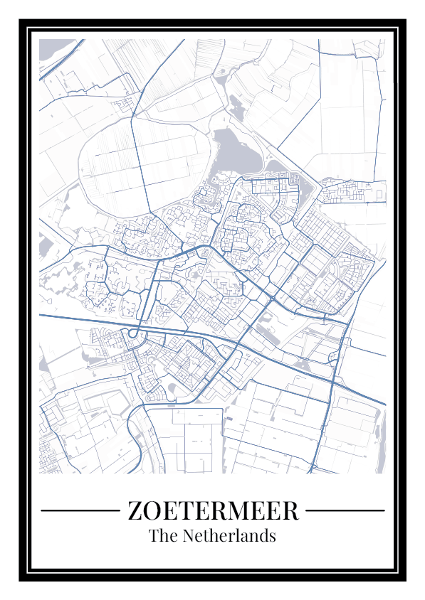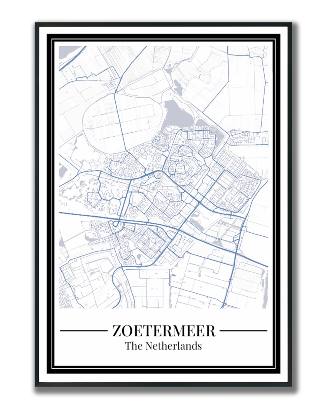 Ontdek de stad op een unieke manier met deze Zoetermeer stadskaart poster in blauw. De gedetailleerde plattegrond van Zoetermeer laat de straten en wijken duidelijk zien en maakt deze print een echte blikvanger voor aan de muur.